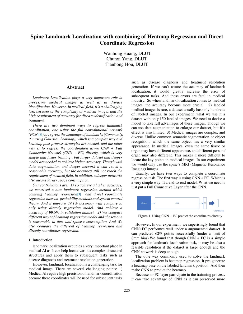 Landmark Localization plays a very important role in processing medical images as well as in disease identification. However, In medical field, it's a challenging task because of the complexity of medical images and the high requirement of accuracy for disease identification and treatment.There are two dominant ways to regress landmark coordination, one using the full convolutional network to regress the heatmaps of landmarks , which is a complex way and heatmap post-process strategies are needed, and the other way is to regress the coordination using CNN + Full Connective Network directly, which is very simple and faster training , but larger dataset and deeper model are needed to achieve higher accuracy. Though with data augmentation and deeper network it can reach a reasonable accuracy, but the accuracy still not reach the requirement of medical field. In addition, a deeper networks also means larger space consumption. To achieve a higher accuracy, we contrived a new landmark regression method which combing heatmap regression and direct coordinate regression base on probability methods and system control theory.