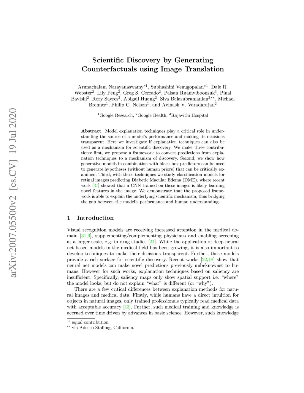Scientific Discovery by Generating Counterfactuals using Image