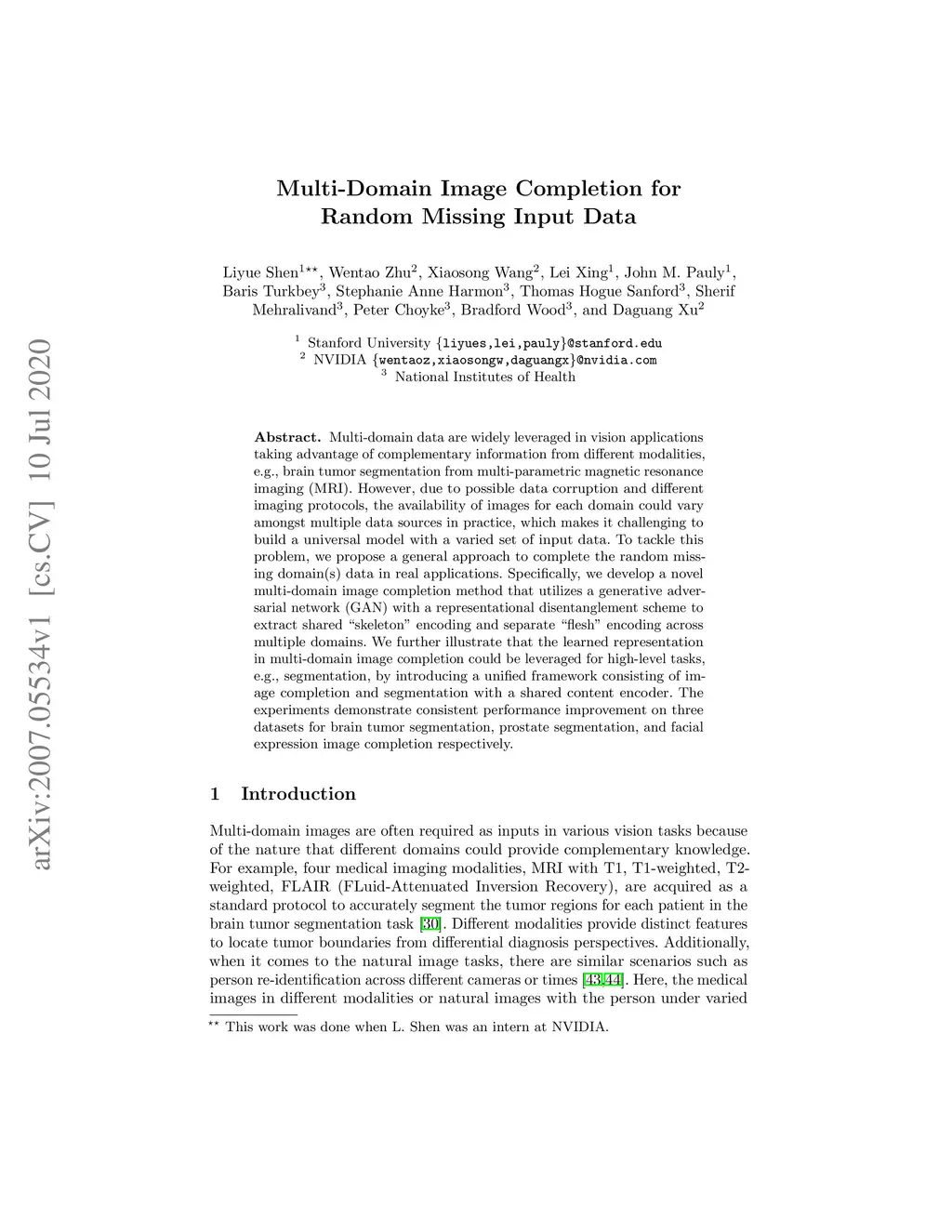 Multi-Domain Image Completion for Random Missing Input Data
