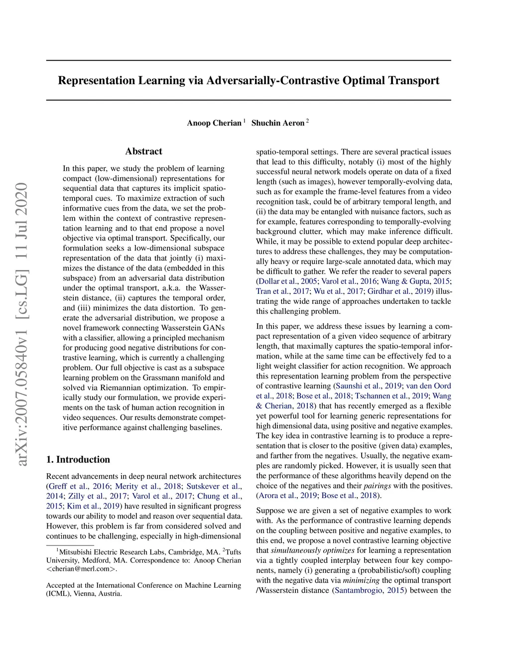 Representation Learning via Adversarially-Contrastive Optimal Transport
