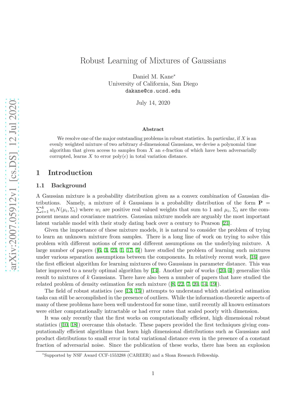 We resolve one of the major outstanding problems in robust statistics. In particular, if is an evenly weighted mixture of two arbitrary -dimensional Gaussians, we devise a polynomial time algorithm that given access to samples from an -fraction of which have been adversarially corrupted, learns to error in total variation distance.