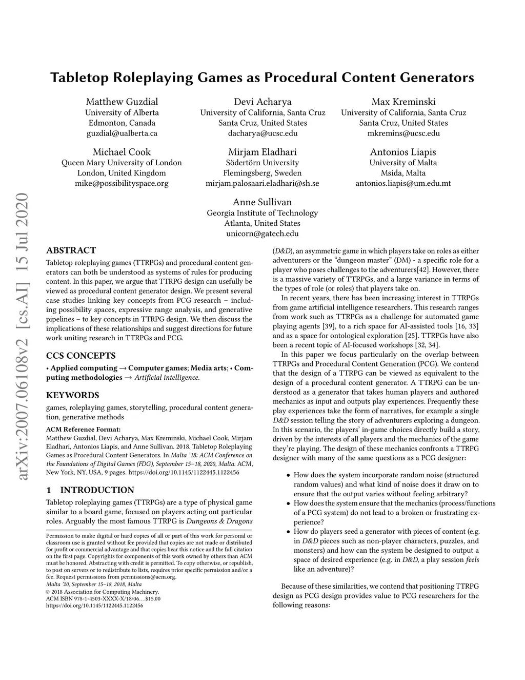 Tabletop roleplaying games (TTRPGs) and procedural content generators can both be understood as systems of rules for producing content. In this paper, we argue that TTRPG design can usefully be viewed as procedural content generator design. We present several case studies linking key concepts from PCG research -- including possibility spaces, expressive range analysis, and generative pipelines -- to key concepts in TTRPG design. We then discuss the implications of these relationships and suggest directions for future work uniting research in TTRPGs and PCG.