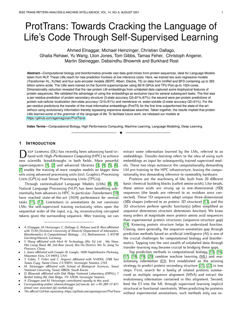 ProtTrans: Towards Cracking the Language of Life's Code Through