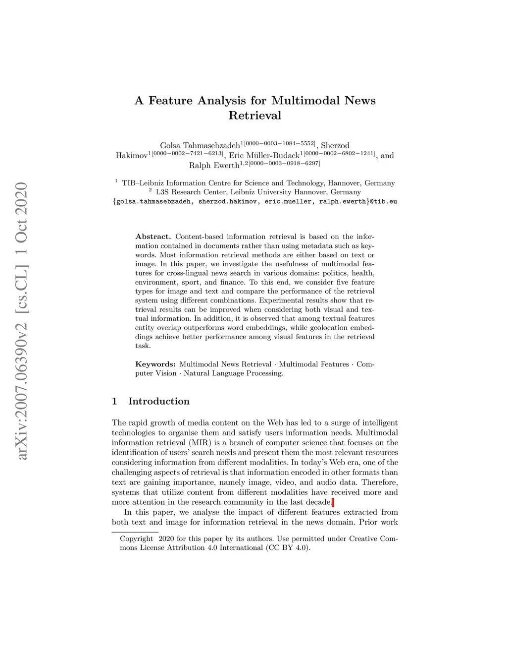 A Feature Analysis for Multimodal News Retrieval