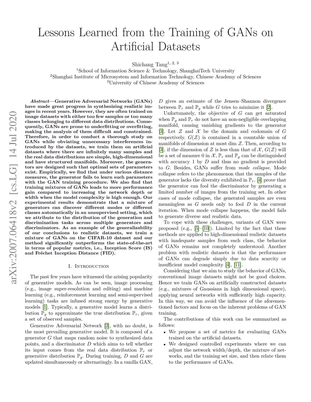Lessons Learned from the Training of GANs on Artificial Datasets