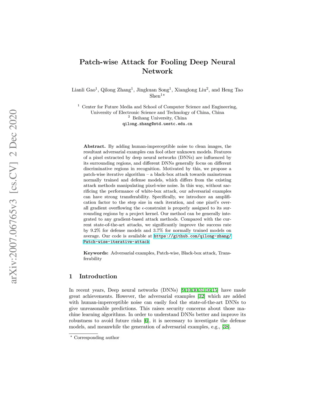 By adding human-imperceptible noise to clean images, the resultant adversarial examples can fool other unknown models. Features of a pixel extracted by deep neural networks (DNNs) are influenced by its surrounding regions, and different DNNs generally focus on different discriminative regions in recognition. Motivated by this, we propose a patch-wise iterative algorithm -- a black-box attack towards mainstream normally trained and defense models, which differs from the existing attack methods manipulating pixel-wise noise. In this way, without sacrificing the performance of white-box attack, our adversarial examples can have strong transferability. Specifically, we introduce an amplification factor to the step size in each iteration, and one pixel's overall gradient overflowing the -constraint is properly assigned to its surrounding regions by a project kernel. Our method can be generally integrated to any gradient-based attack methods. Compared with the current state-of-the-art attacks, we significantly improve the success rate by 9.2\% for defense models and 3.7\% for normally trained models on average. Our code is available at \url{https://github.com/qilong-zhang/Patch-wise-iterative-attack}
