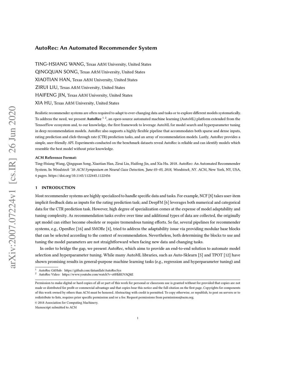 AutoRec: An Automated Recommender System