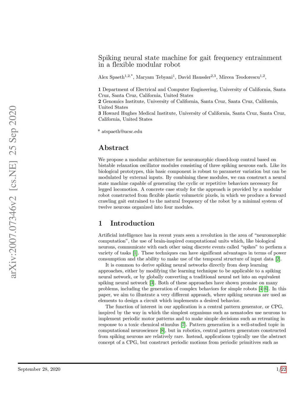 Spiking neural state machine for gait frequency entrainment in a