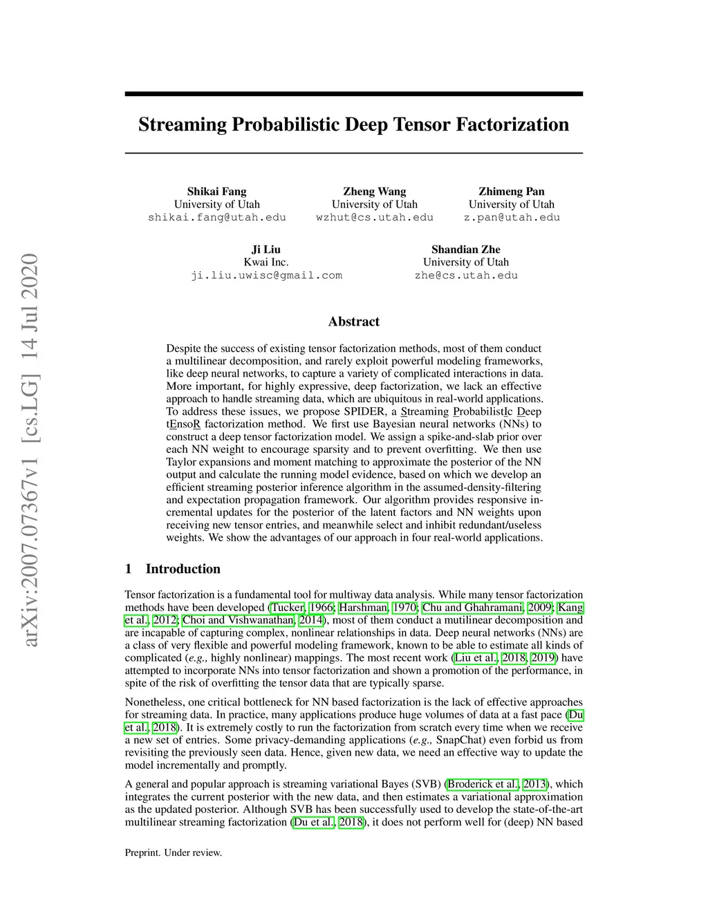 Streaming Probabilistic Deep Tensor Factorization