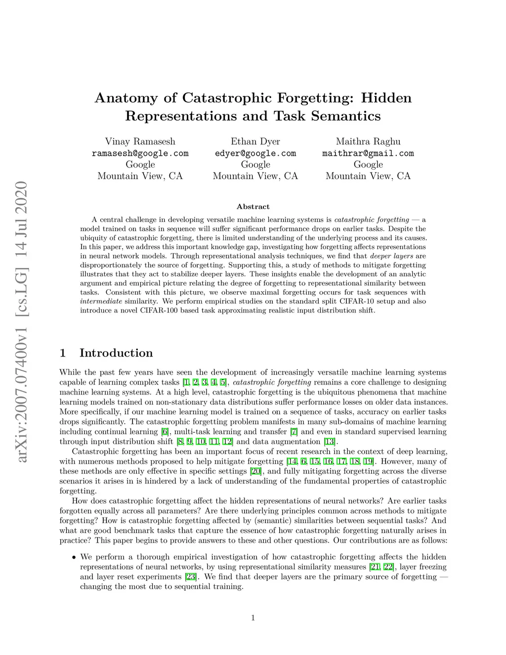 Anatomy of Catastrophic Forgetting: Hidden Representations and Task