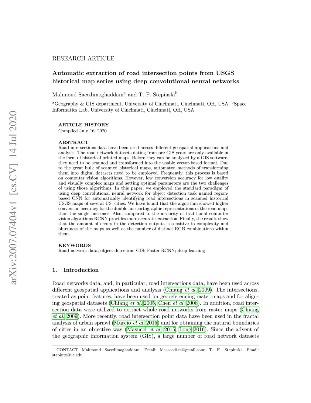 Automatic extraction of road intersection points from USGS historical