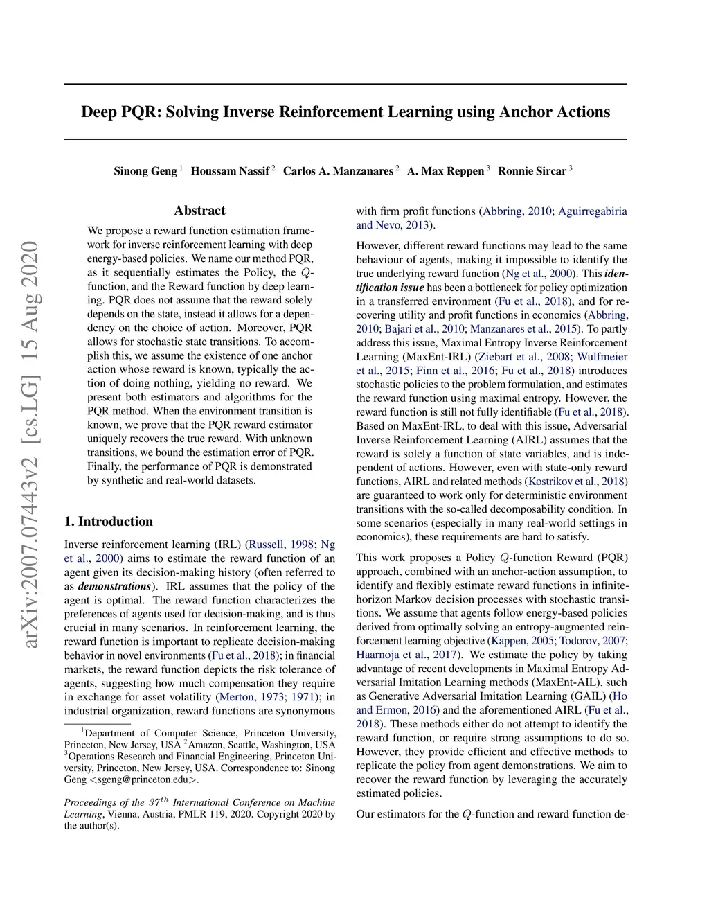 Deep PQR: Solving Inverse Reinforcement Learning using Anchor Actions