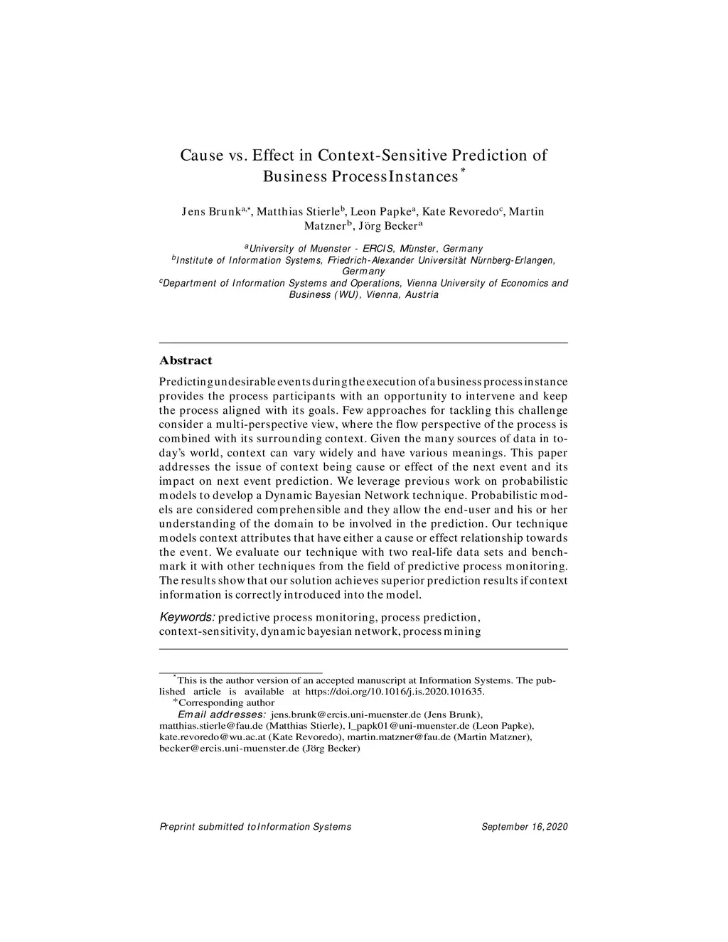 Cause vs. Effect in Context-Sensitive Prediction of Business Process