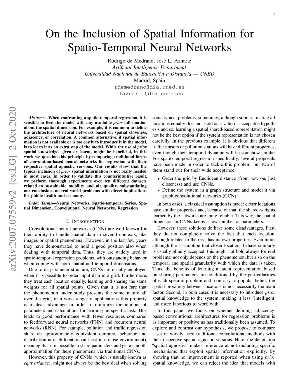 When confronting a spatio-temporal regression, it is sensible to feed the model with any available prior information about the spatial dimension. For example, it is common to define the architecture of neural networks based on spatial closeness, adjacency, or correlation. A common alternative, if spatial information is not available or is too costly to introduce it in the model, is to learn it as an extra step of the model. While the use of prior spatial knowledge, given or learnt, might be beneficial, in this work we question this principle by comparing spatial agnostic neural networks with state of the art models. Our results show that the typical inclusion of prior spatial information is not really needed in most cases. In order to validate this counterintuitive result, we perform thorough experiments over ten different datasets related to sustainable mobility and air quality, substantiating our conclusions on real world problems with direct implications for public health and economy.