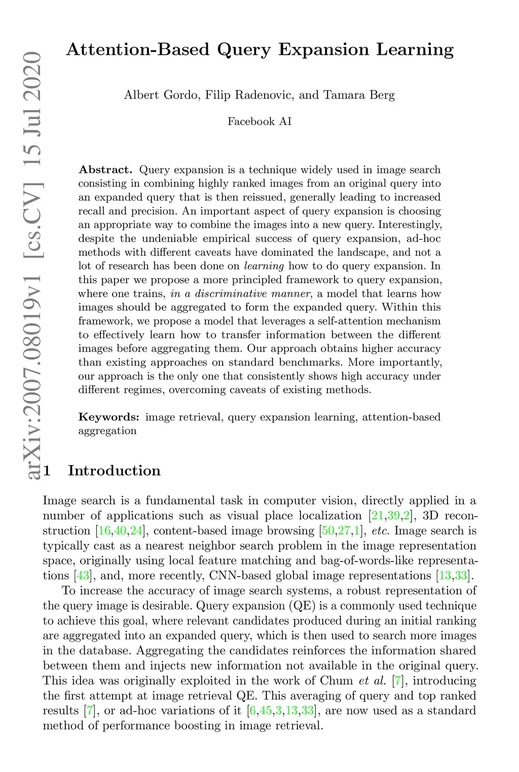 Query expansion is a technique widely used in image search consisting in combining highly ranked images from an original query into an expanded query that is then reissued, generally leading to increased recall and precision. An important aspect of query expansion is choosing an appropriate way to combine the images into a new query. Interestingly, despite the undeniable empirical success of query expansion, ad-hoc methods with different caveats have dominated the landscape, and not a lot of research has been done on learning how to do query expansion. In this paper we propose a more principled framework to query expansion, where one trains, in a discriminative manner, a model that learns how images should be aggregated to form the expanded query. Within this framework, we propose a model that leverages a self-attention mechanism to effectively learn how to transfer information between the different images before aggregating them. Our approach obtains higher accuracy than existing approaches on standard benchmarks. More importantly, our approach is the only one that consistently shows high accuracy under different regimes, overcoming caveats of existing methods.