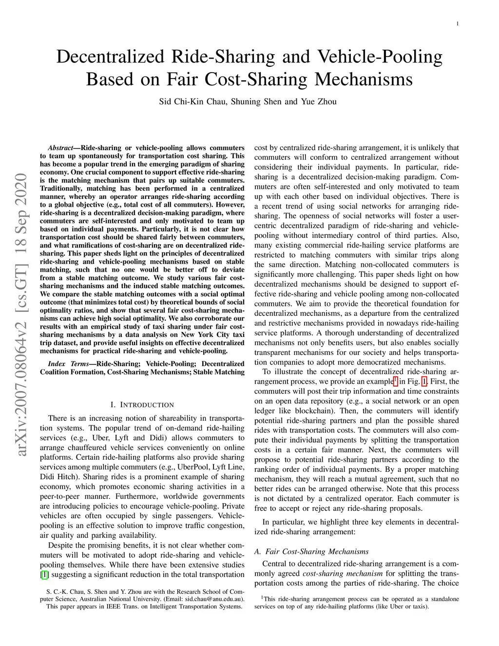 Decentralized Ride-Sharing and Vehicle-Pooling Based on Fair