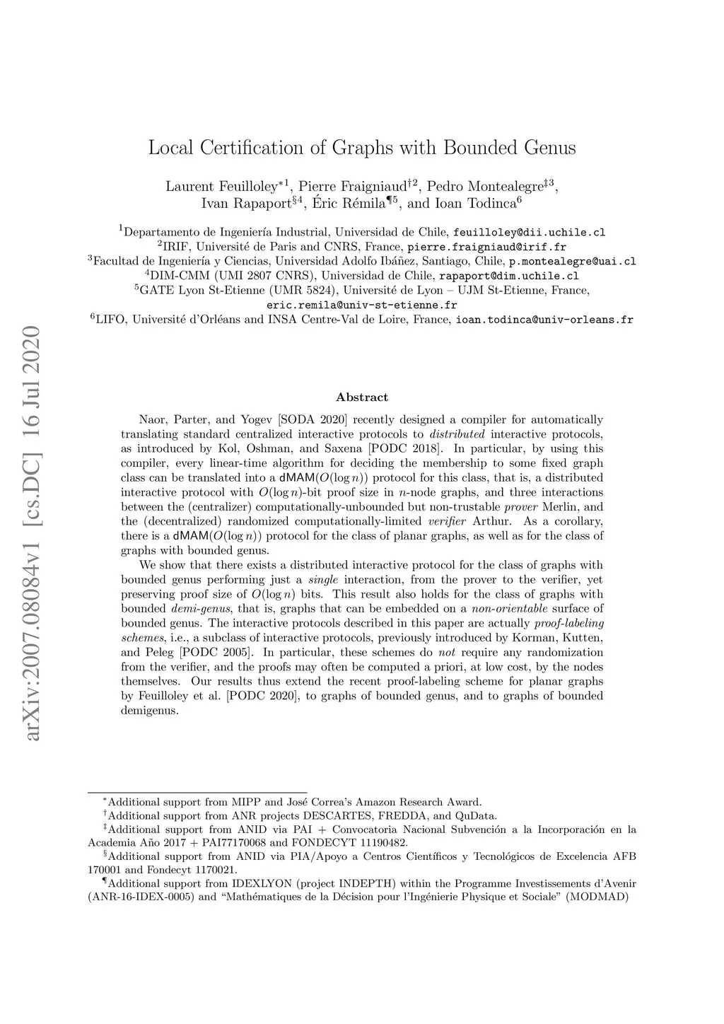 Naor, Parter, and Yogev [SODA 2020] recently designed a compiler for automatically translating standard centralized interactive protocols to distributed interactive protocols, as introduced by Kol, Oshman, and Saxena [PODC 2018]. In particular, by using this compiler, every linear-time algorithm for deciding the membership to some fixed graph class can be translated into a protocol for this class, that is, a distributed interactive protocol with -bit proof size in -node graphs, and three interactions between the (centralizer) computationally-unbounded but non-trustable prover Merlin, and the (decentralized) randomized computationally-limited verifier Arthur. As a corollary, there is a protocol for the class of planar graphs, as well as for the class of graphs with bounded genus. We show that there exists a distributed interactive protocol for the class of graphs with bounded genus performing just a single interaction, from the prover to the verifier, yet preserving proof size of bits. This result also holds for the class of graphs with bounded demi-genus, that is, graphs that can be embedded on a non-orientable surface of bounded genus. The interactive protocols described in this paper are actually proof-labeling schemes, i.e., a subclass of interactive protocols, previously introduced by Korman, Kutten, and Peleg [PODC 2005]. In particular, these schemes do not require any randomization from the verifier, and the proofs may often be computed a priori, at low cost, by the nodes themselves. Our results thus extend the recent proof-labeling scheme for planar graphs by Feuilloley et al. [PODC 2020], to graphs of bounded genus, and to graphs of bounded demigenus.
