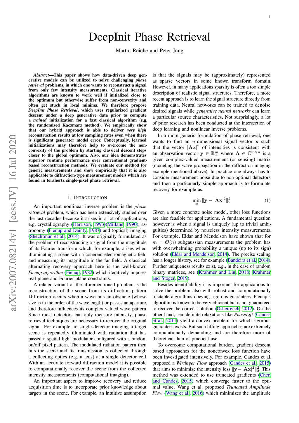 This paper shows how data-driven deep generative models can be utilized to solve challenging phase retrieval problems, in which one wants to reconstruct a signal from only few intensity measurements. Classical iterative algorithms are known to work well if initialized close to the optimum but otherwise suffer from non-convexity and often get stuck in local minima. We therefore propose DeepInit Phase Retrieval, which uses regularized gradient descent under a deep generative data prior to compute a trained initialization for a fast classical algorithm (e.g. the randomized Kaczmarz method). We empirically show that our hybrid approach is able to deliver very high reconstruction results at low sampling rates even when there is significant generator model error. Conceptually, learned initializations may therefore help to overcome the non-convexity of the problem by starting classical descent steps closer to the global optimum. Also, our idea demonstrates superior runtime performance over conventional gradient-based reconstruction methods. We evaluate our method for generic measurements and show empirically that it is also applicable to diffraction-type measurement models which are found in terahertz single-pixel phase retrieval.