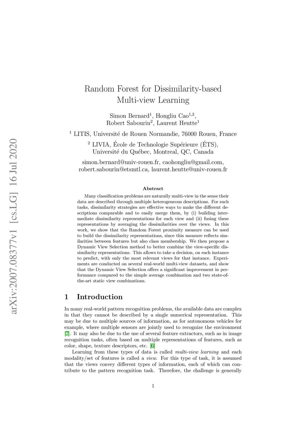 Random Forest for Dissimilarity-based Multi-view Learning