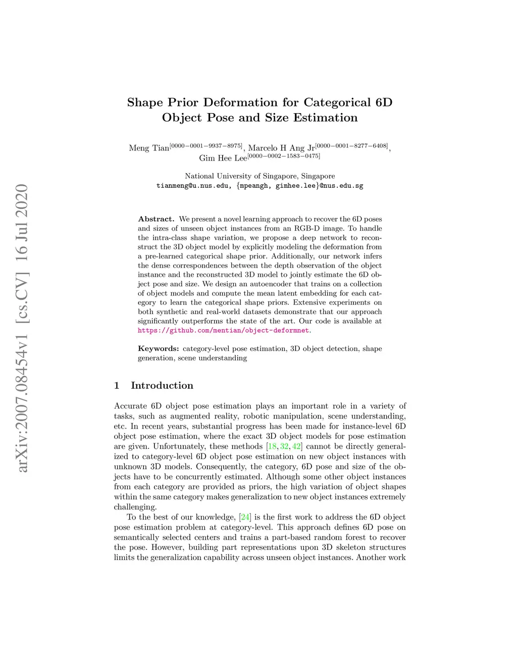 Shape Prior Deformation for Categorical 6D Object Pose and Size