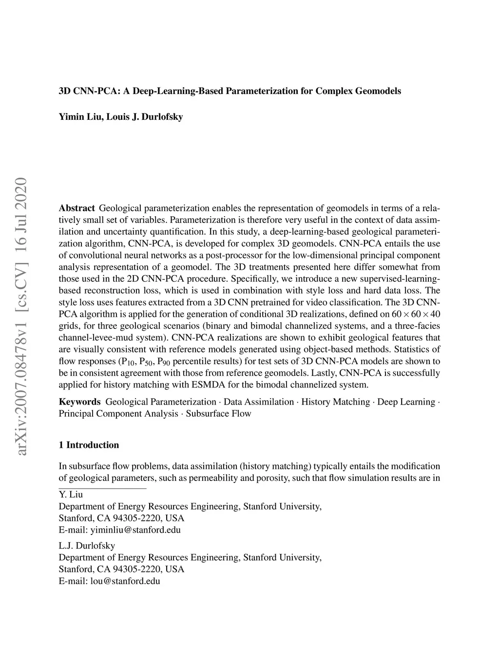 3D CNN-PCA: A Deep-Learning-Based Parameterization for Complex Geomodels