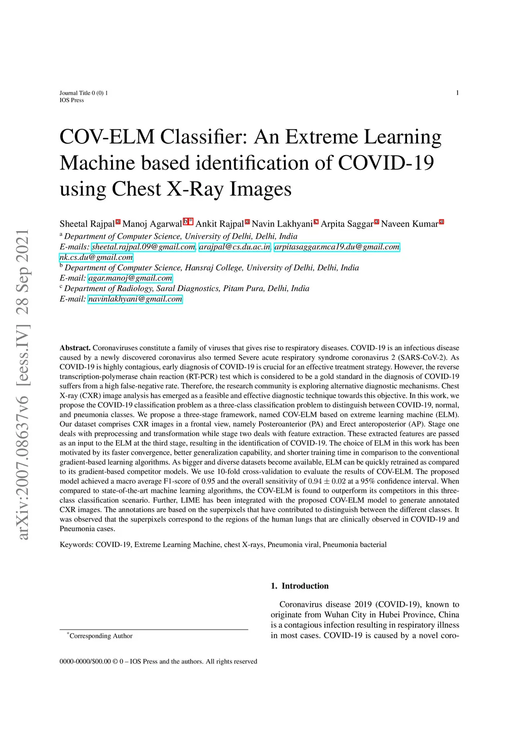 COV-ELM classifier: An Extreme Learning Machine based identification of