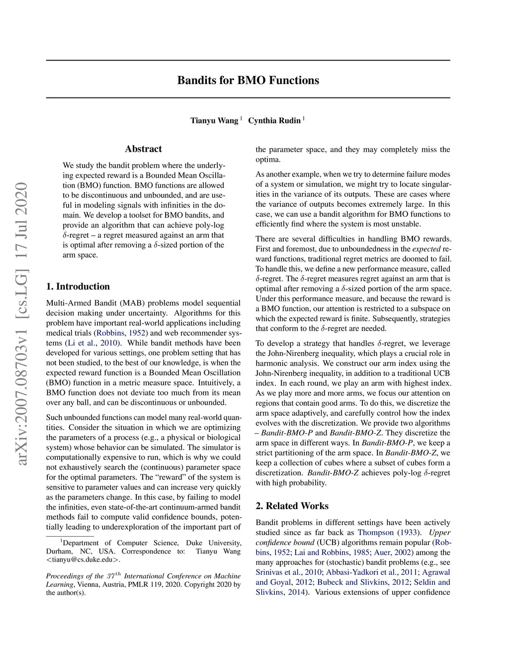 Bandits for BMO Functions