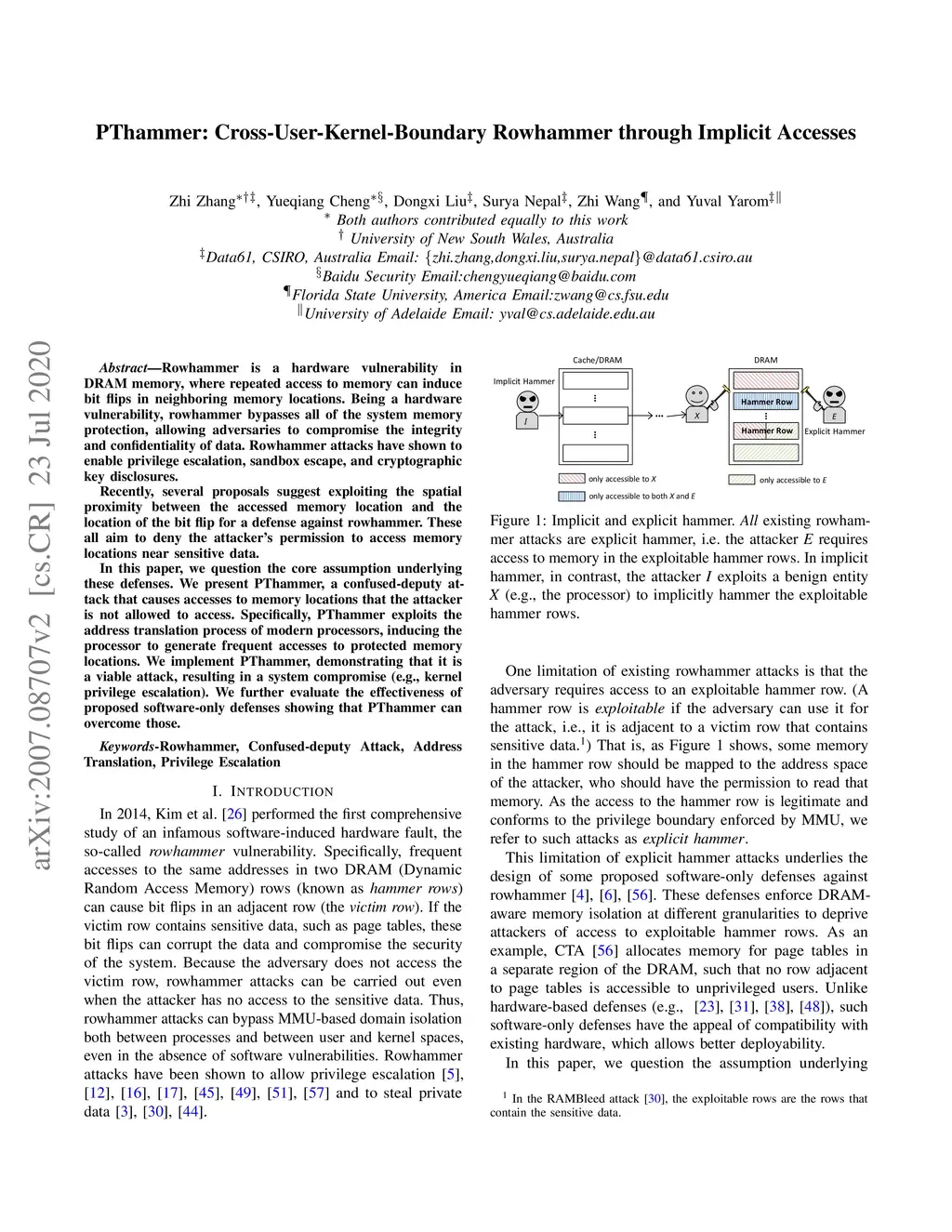 PThammer: Cross-User-Kernel-Boundary Rowhammer through Implicit Accesses