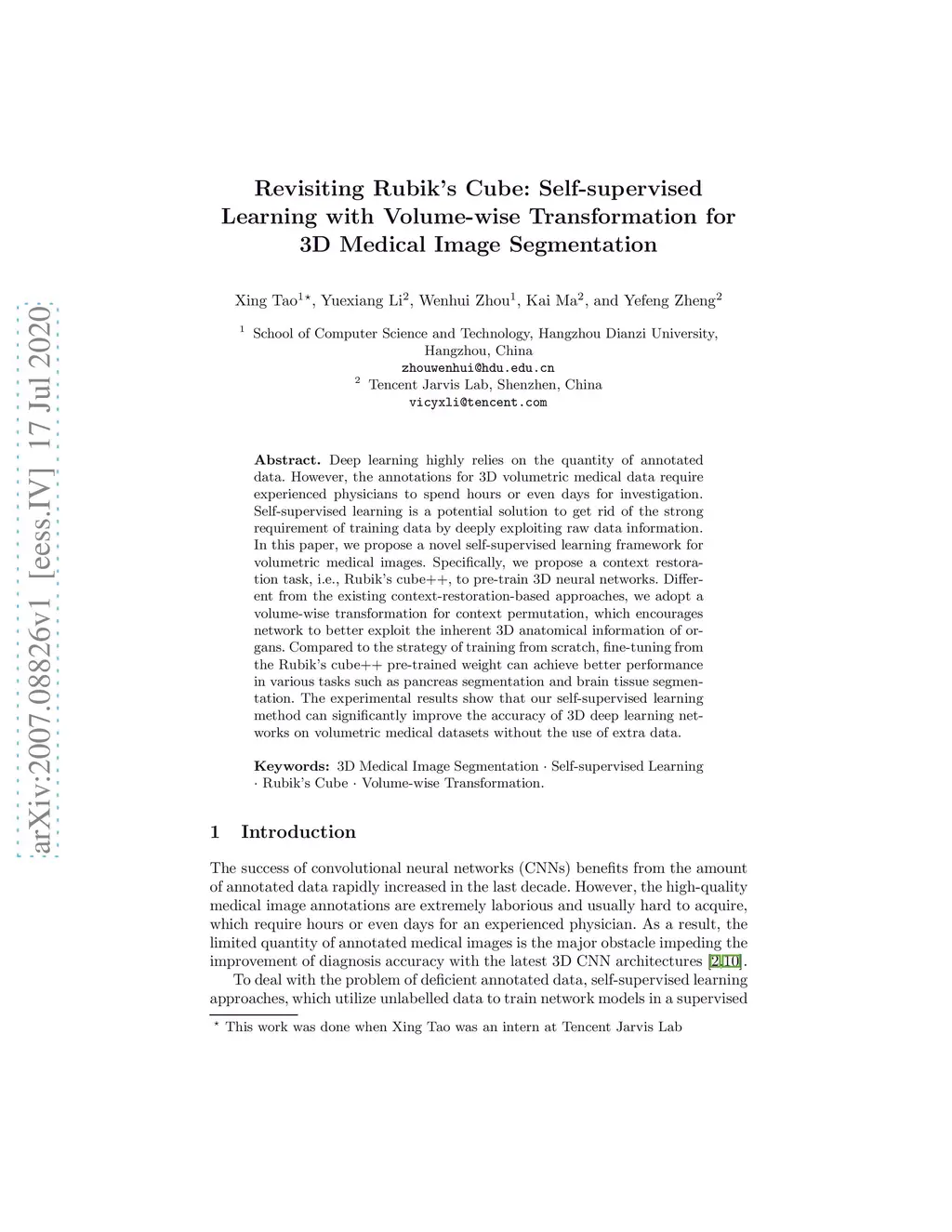 Revisiting Rubik's Cube: Self-supervised Learning with Volume-wise