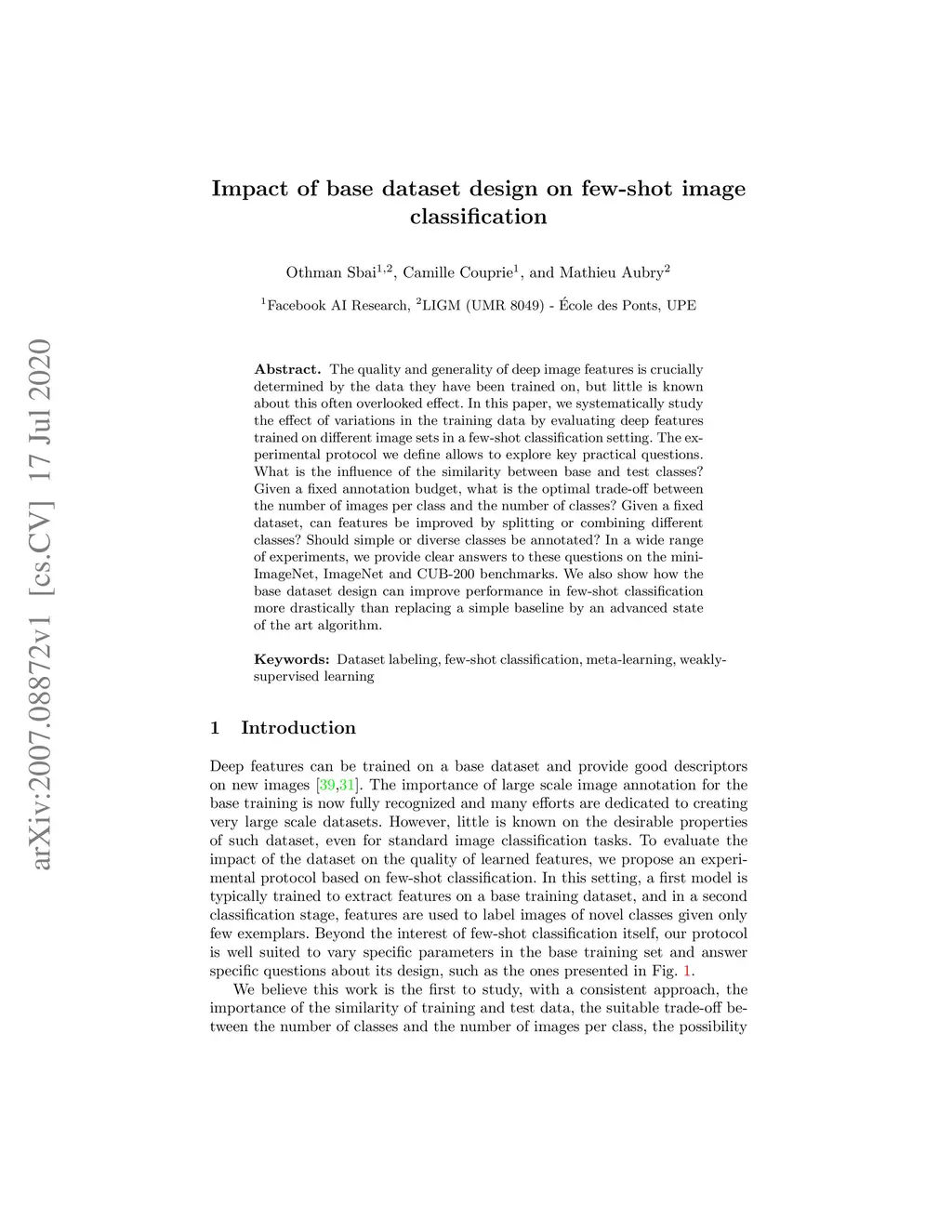 The quality and generality of deep image features is crucially determined by the data they have been trained on, but little is known about this often overlooked effect. In this paper, we systematically study the effect of variations in the training data by evaluating deep features trained on different image sets in a few-shot classification setting. The experimental protocol we define allows to explore key practical questions. What is the influence of the similarity between base and test classes? Given a fixed annotation budget, what is the optimal trade-off between the number of images per class and the number of classes? Given a fixed dataset, can features be improved by splitting or combining different classes? Should simple or diverse classes be annotated? In a wide range of experiments, we provide clear answers to these questions on the miniImageNet, ImageNet and CUB-200 benchmarks. We also show how the base dataset design can improve performance in few-shot classification more drastically than replacing a simple baseline by an advanced state of the art algorithm.