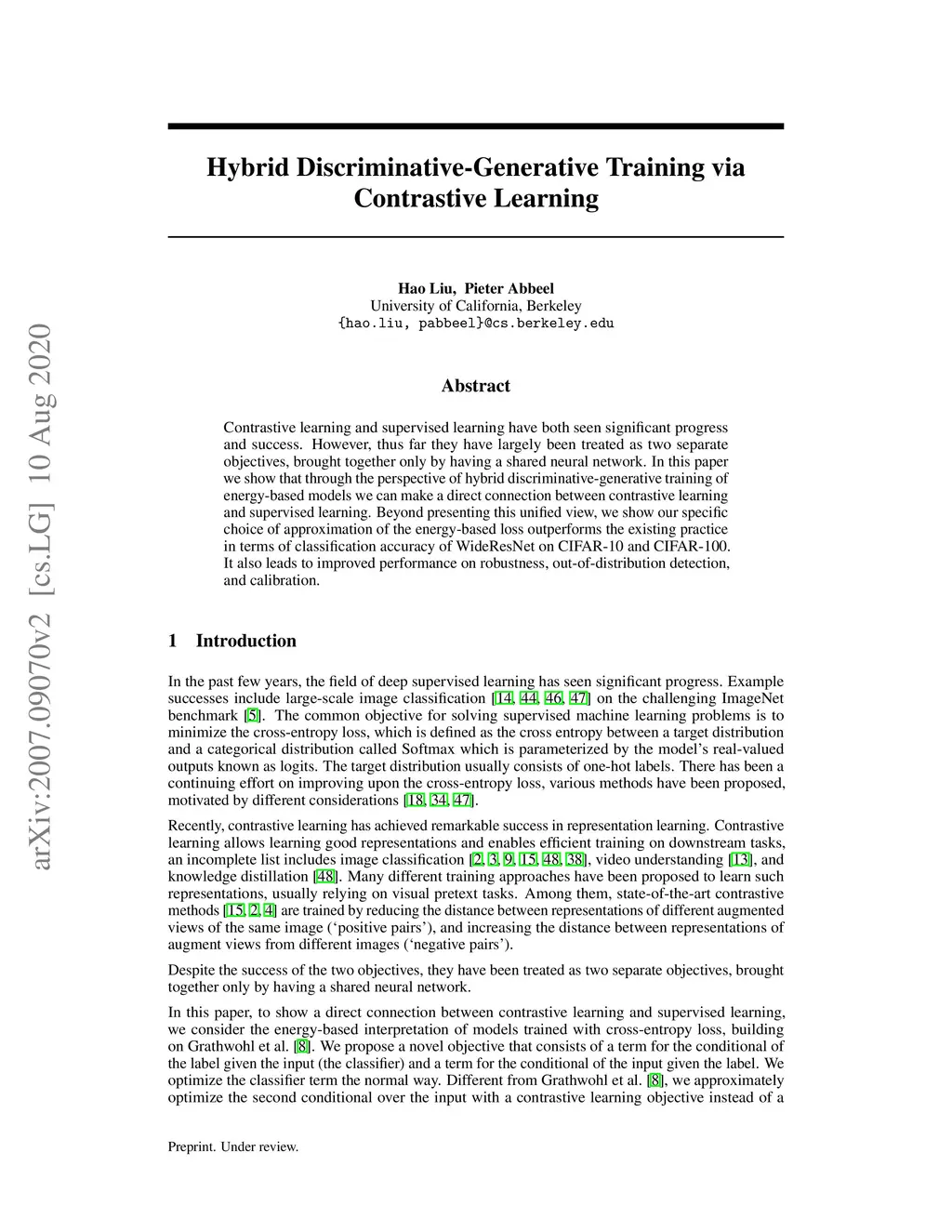 Hybrid Discriminative-Generative Training via Contrastive Learning