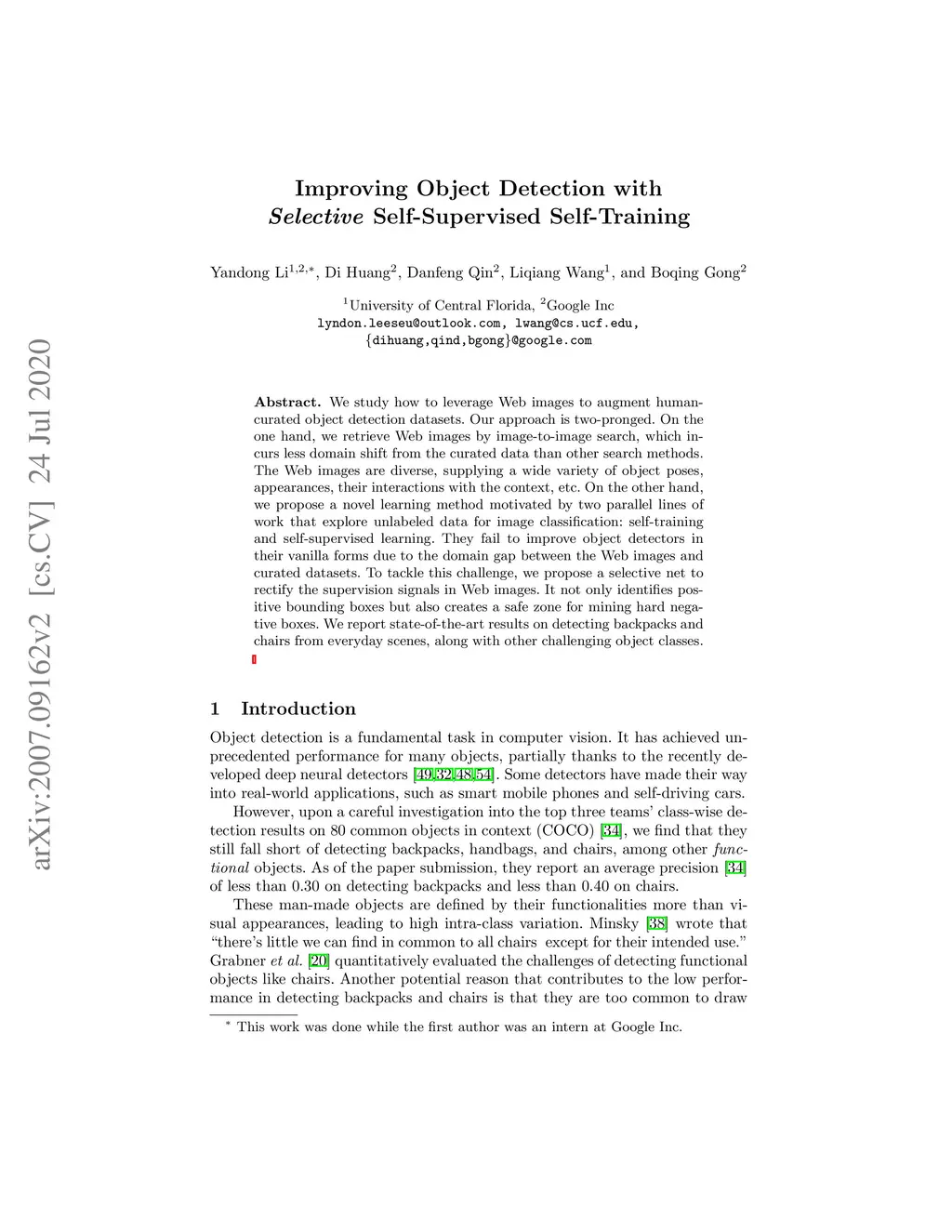 We study how to leverage Web images to augment human-curated object detection datasets. Our approach is two-pronged. On the one hand, we retrieve Web images by image-to-image search, which incurs less domain shift from the curated data than other search methods. The Web images are diverse, supplying a wide variety of object poses, appearances, their interactions with the context, etc. On the other hand, we propose a novel learning method motivated by two parallel lines of work that explore unlabeled data for image classification: self-training and self-supervised learning. They fail to improve object detectors in their vanilla forms due to the domain gap between the Web images and curated datasets. To tackle this challenge, we propose a selective net to rectify the supervision signals in Web images. It not only identifies positive bounding boxes but also creates a safe zone for mining hard negative boxes. We report state-of-the-art results on detecting backpacks and chairs from everyday scenes, along with other challenging object classes.