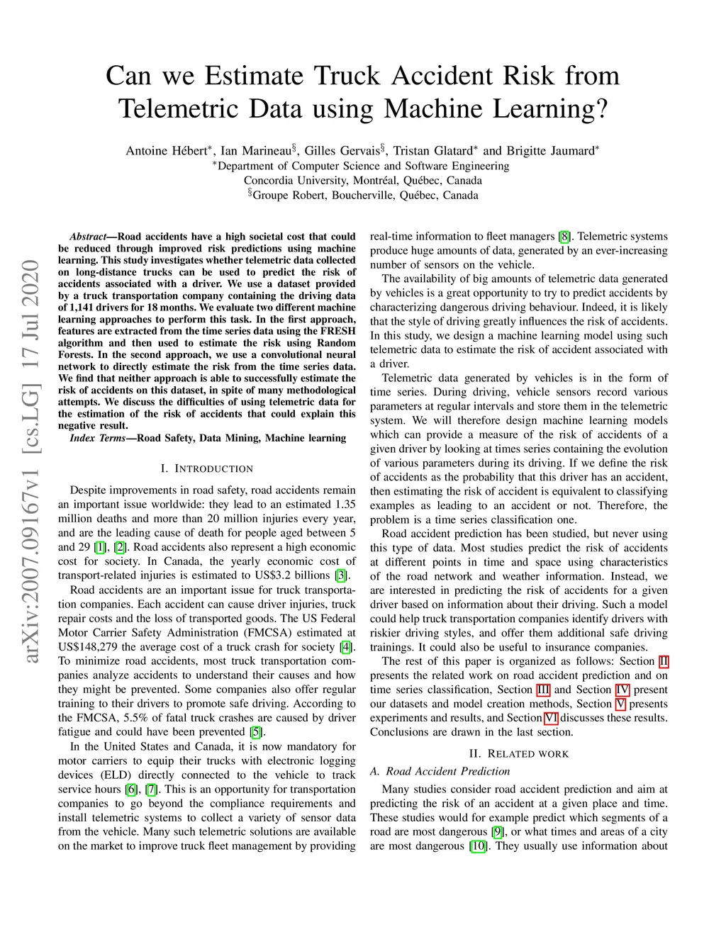 Can we Estimate Truck Accident Risk from Telemetric Data using Machine
