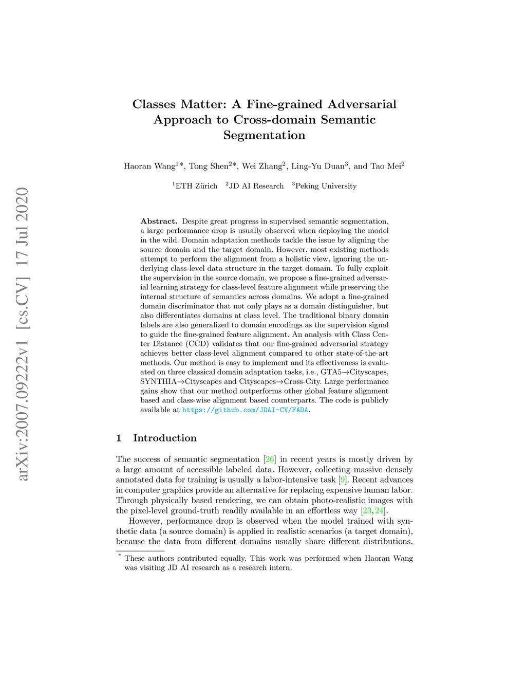 Classes Matter: A Fine-grained Adversarial Approach to Cross-domain