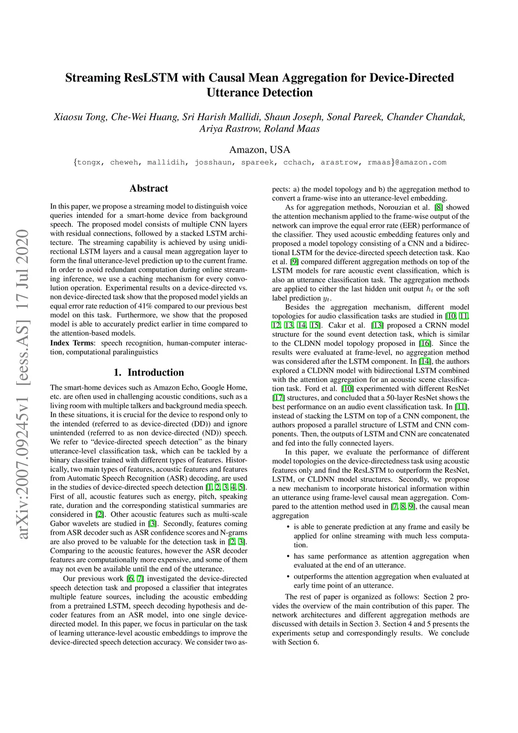 Streaming ResLSTM with Causal Mean Aggregation for Device-Directed