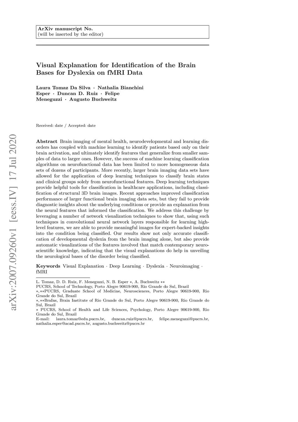 Visual Explanation for Identification of the Brain Bases for Dyslexia on