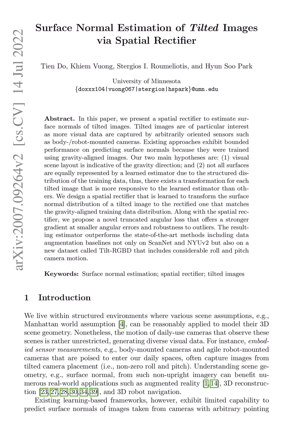 Surface Normal Estimation of Tilted Images via Spatial Rectifier