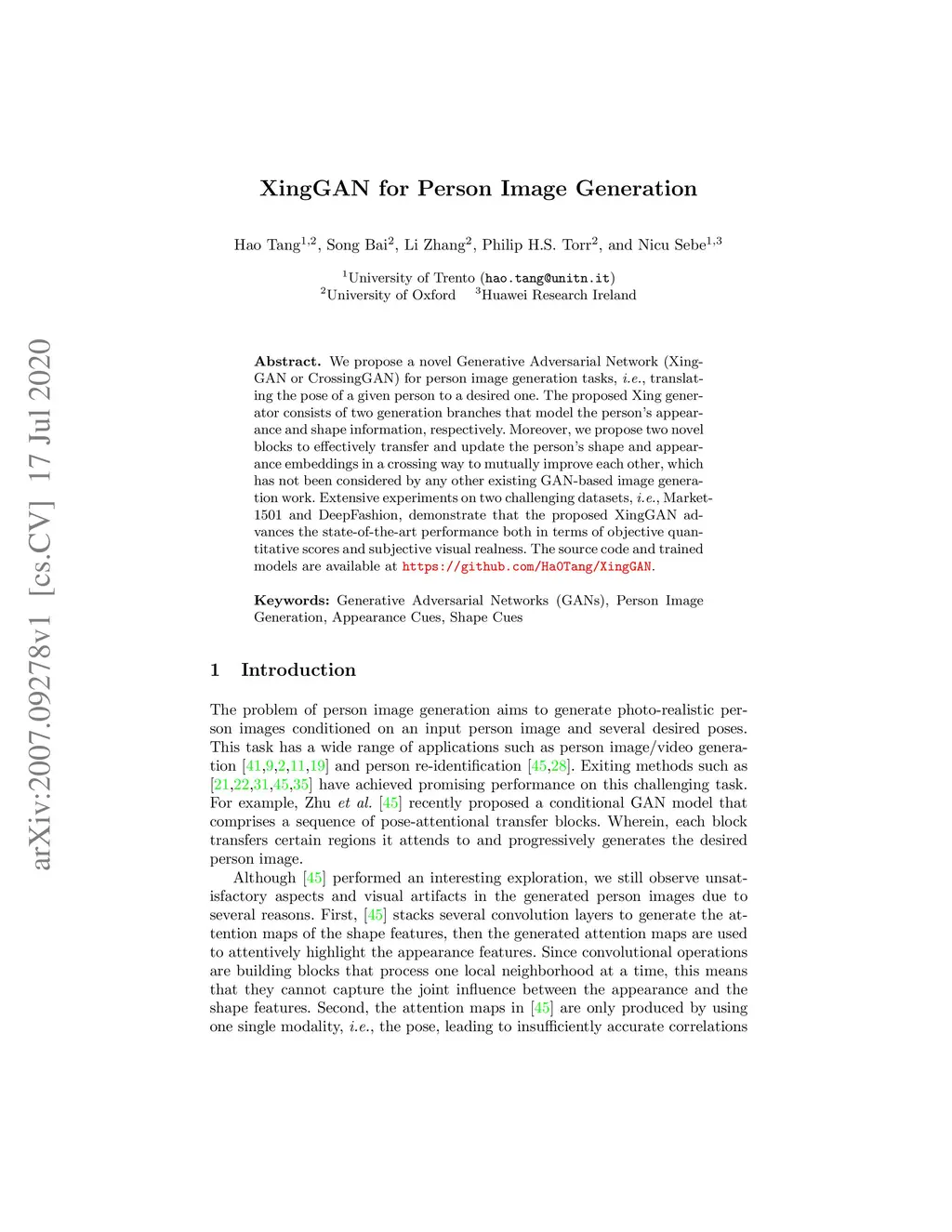 XingGAN for Person Image Generation
