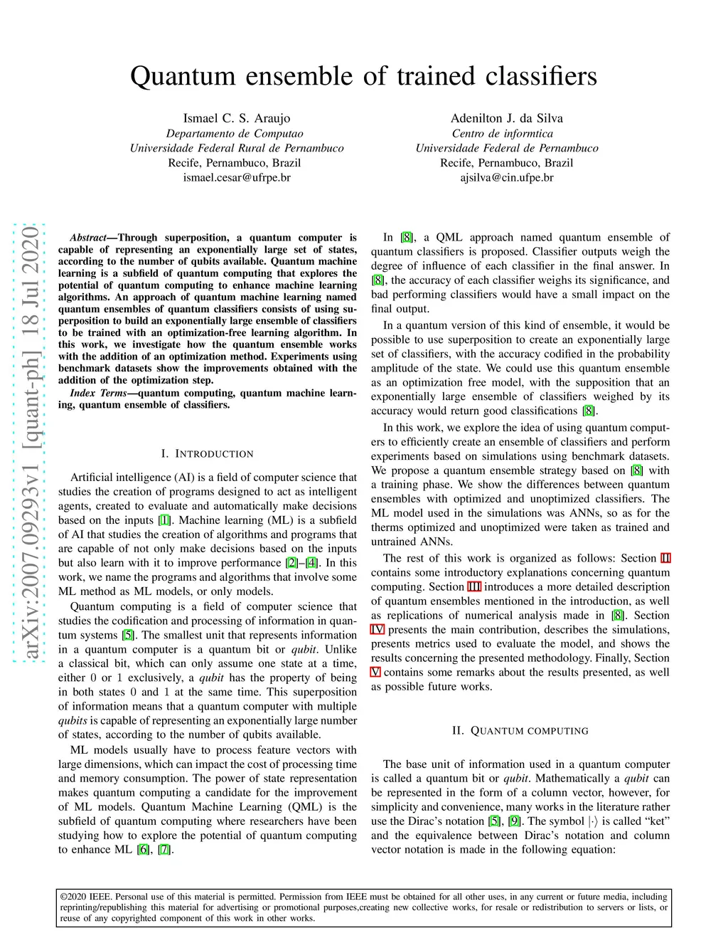 Quantum ensemble of trained classifiers