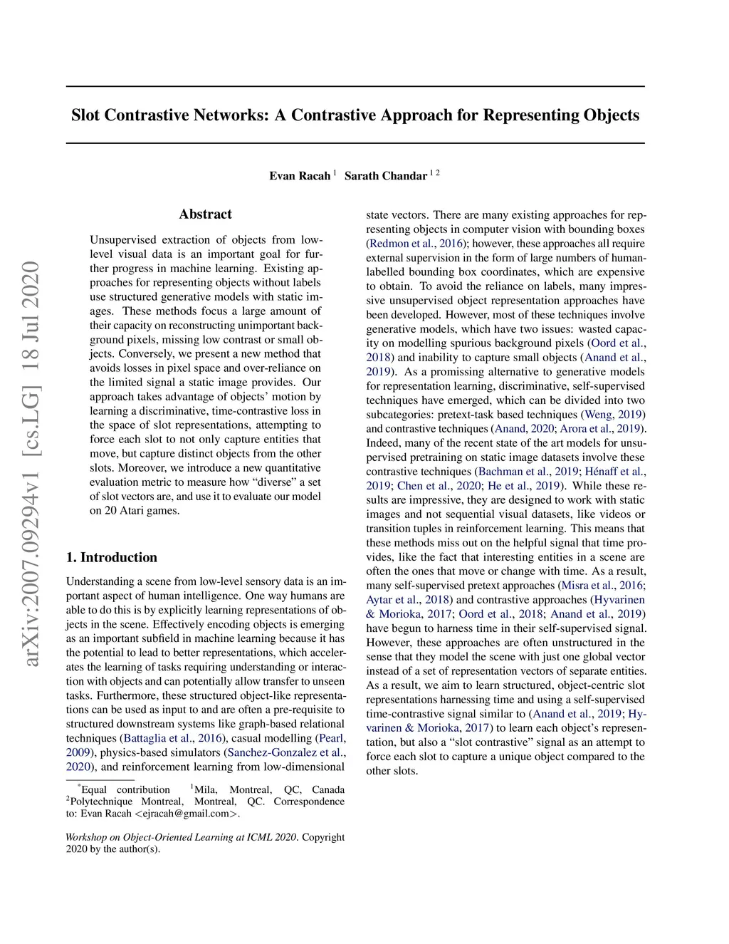 Slot Contrastive Networks: A Contrastive Approach for Representing
