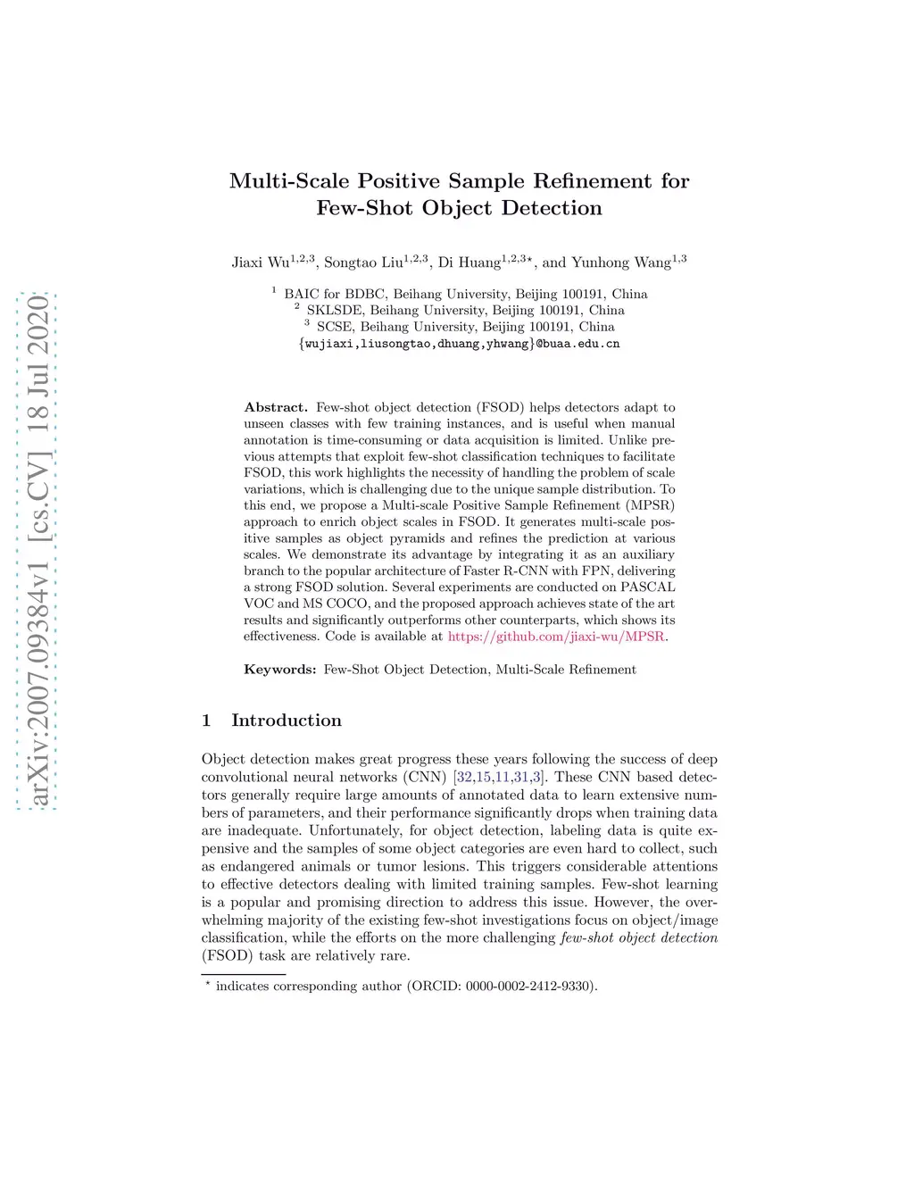 Multi-Scale Positive Sample Refinement for Few-Shot Object Detection