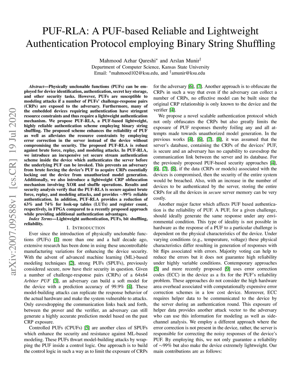 PUF-RLA: A PUF-based Reliable and Lightweight Authentication Protocol