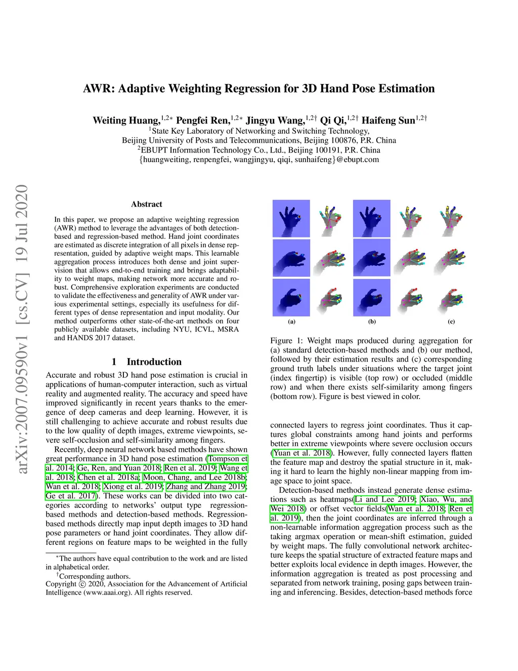 AWR: Adaptive Weighting Regression for 3D Hand Pose Estimation