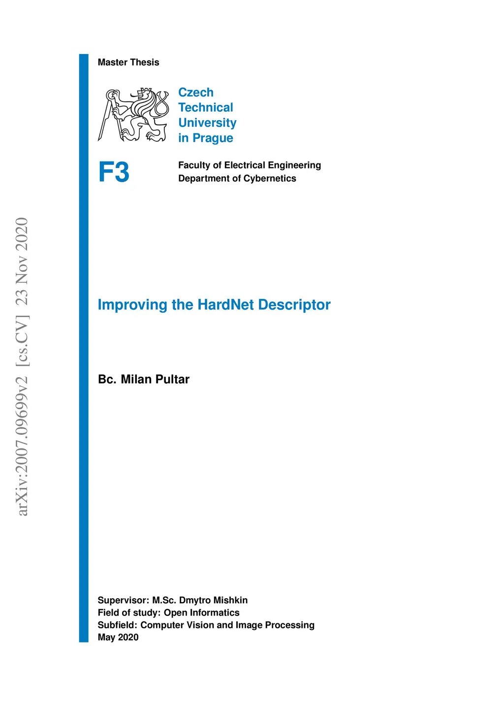 In the thesis we consider the problem of local feature descriptor learning for wide baseline stereo focusing on the HardNet descriptor, which is close to state-of-the-art. AMOS Patches dataset is introduced, which improves robustness to illumination and appearance changes. It is based on registered images from selected cameras from the AMOS dataset. We provide recommendations on the patch dataset creation process and evaluate HardNet trained on data of different modalities. We also introduce a dataset combination and reduction methods, that allow comparable performance on a significantly smaller dataset. HardNet8, consistently outperforming the original HardNet, benefits from the architectural choices made: connectivity pattern, final pooling, receptive field, CNN building blocks found by manual or automatic search algorithms -- DARTS. We show impact of overlooked hyperparameters such as batch size and length of training on the descriptor quality. PCA dimensionality reduction further boosts performance and also reduces memory footprint. Finally, the insights gained lead to two HardNet8 descriptors: one performing well on a variety of benchmarks -- HPatches, AMOS Patches and IMW Phototourism, the other is optimized for IMW Phototourism.