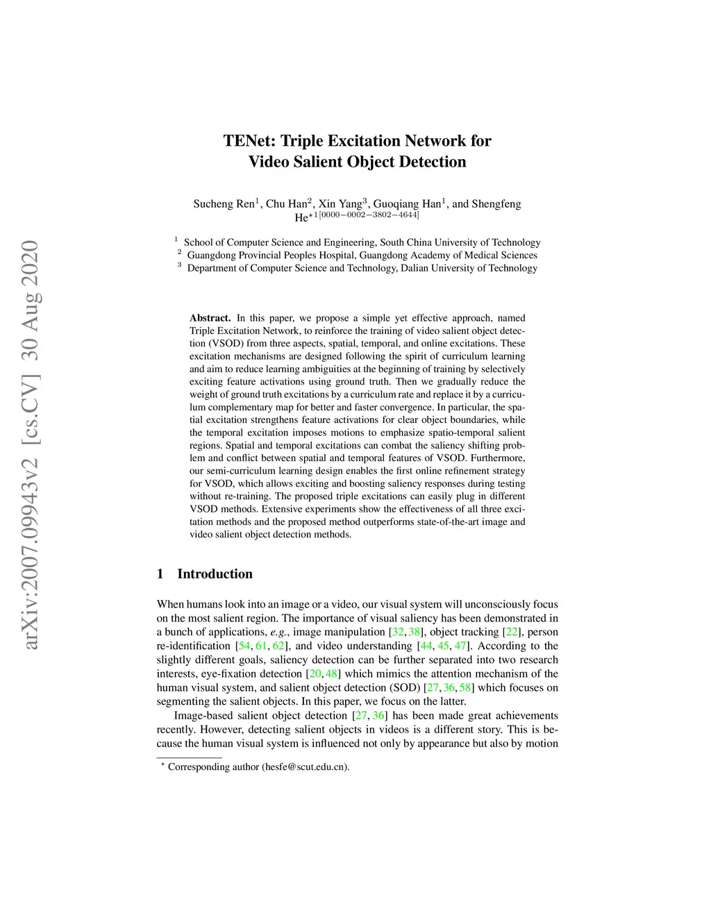 TENet: Triple Excitation Network for Video Salient Object Detection