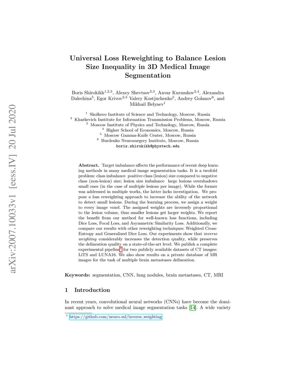 Universal Loss Reweighting to Balance Lesion Size Inequality in 3D