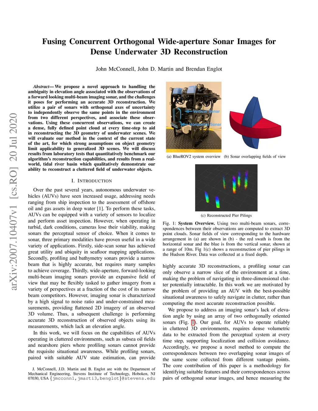 We propose a novel approach to handling the ambiguity in elevation angle associated with the observations of a forward looking multi-beam imaging sonar, and the challenges it poses for performing an accurate 3D reconstruction. We utilize a pair of sonars with orthogonal axes of uncertainty to independently observe the same points in the environment from two different perspectives, and associate these observations. Using these concurrent observations, we can create a dense, fully defined point cloud at every time-step to aid in reconstructing the 3D geometry of underwater scenes. We will evaluate our method in the context of the current state of the art, for which strong assumptions on object geometry limit applicability to generalized 3D scenes. We will discuss results from laboratory tests that quantitatively benchmark our algorithm's reconstruction capabilities, and results from a real-world, tidal river basin which qualitatively demonstrate our ability to reconstruct a cluttered field of underwater objects.