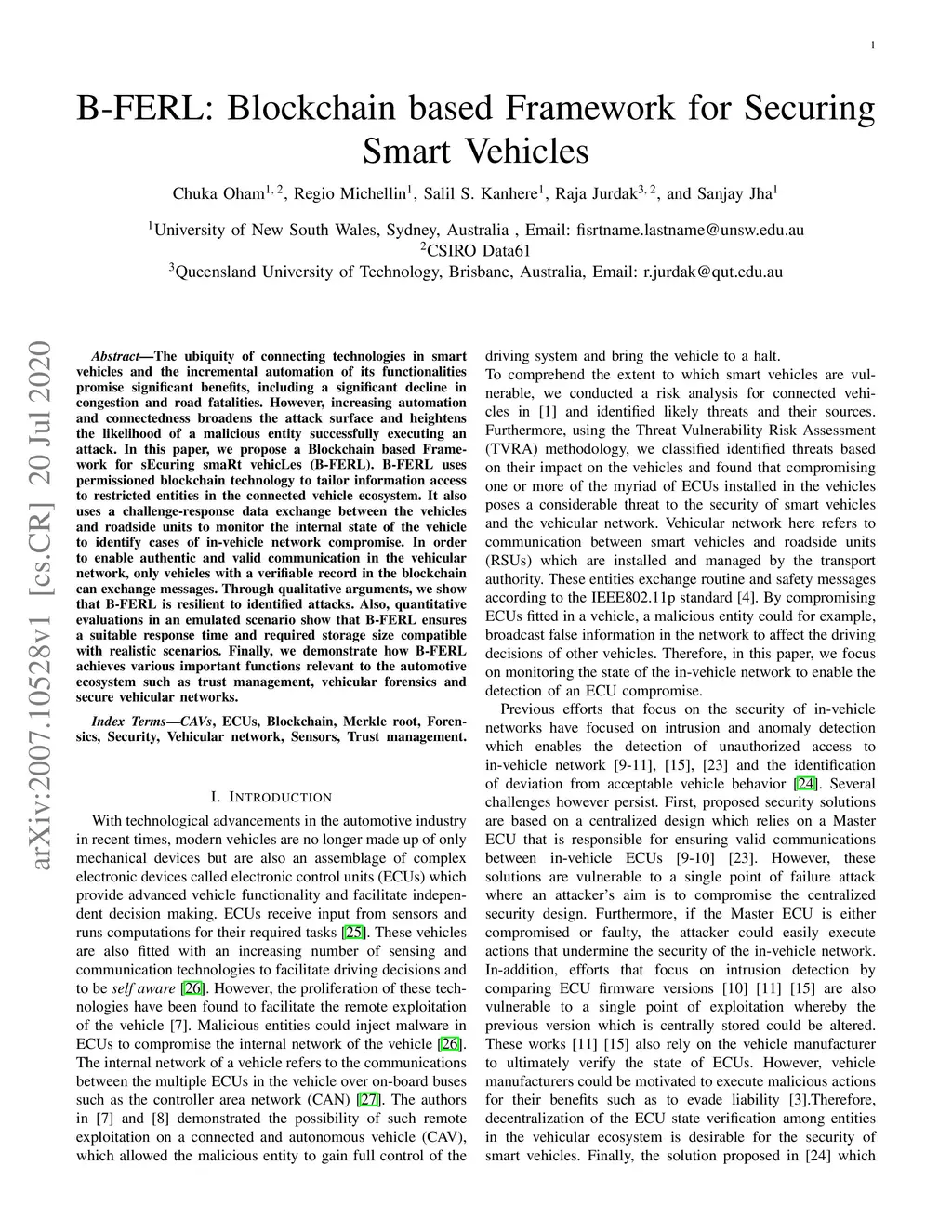 B-FERL: Blockchain based Framework for Securing Smart Vehicles
