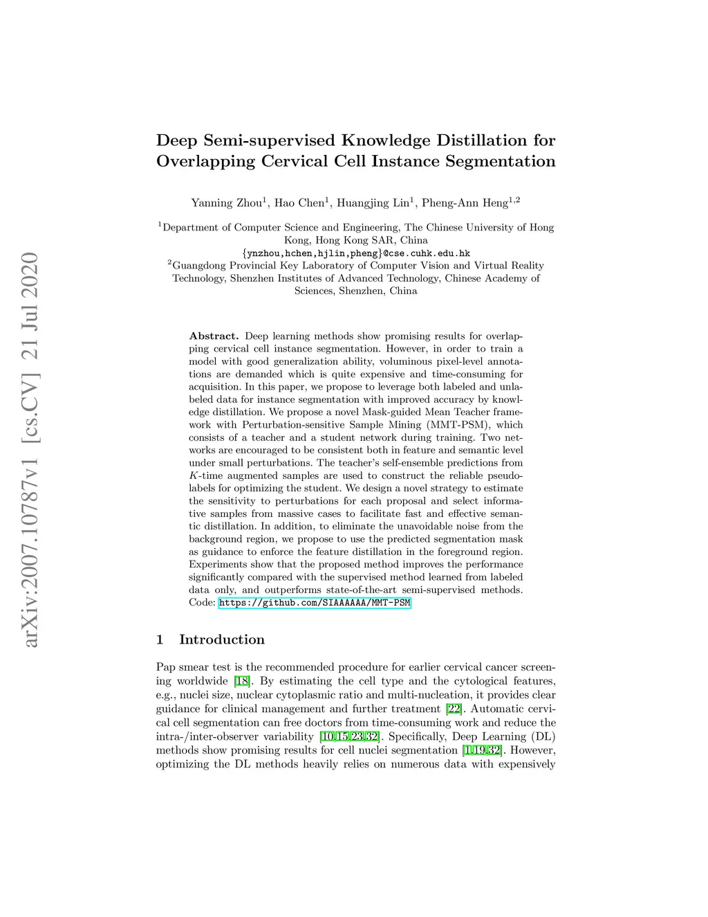 Deep Semi-supervised Knowledge Distillation for Overlapping Cervical