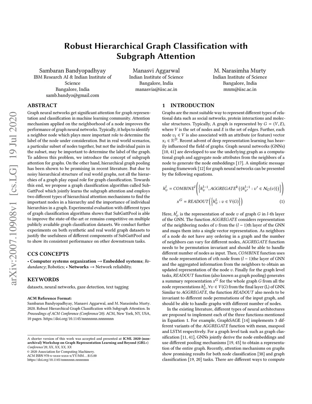 Robust Hierarchical Graph Classification with Subgraph Attention